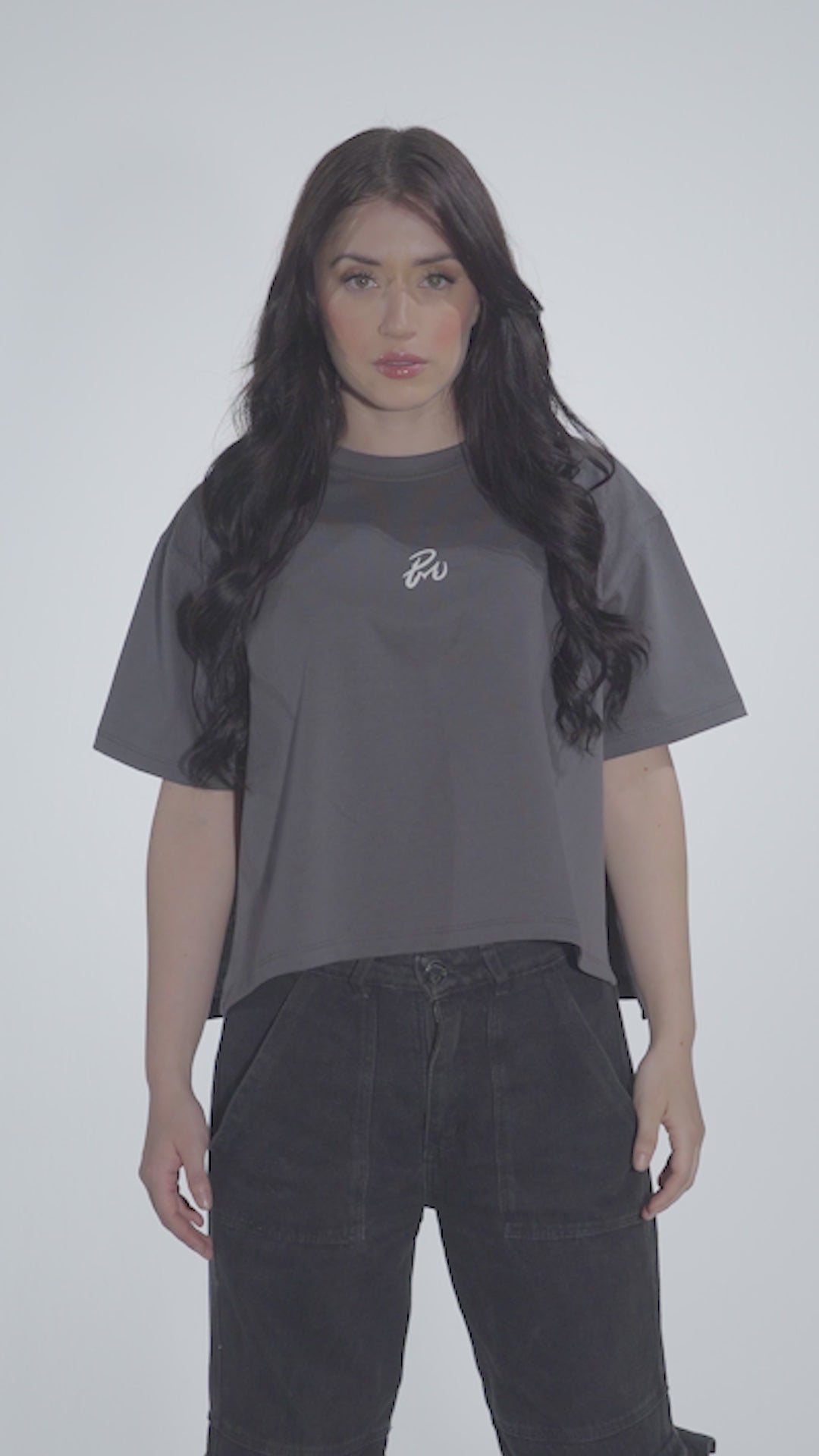 Crop top en pima peruano 100%, ligero, suave y cómodo. El estampado en alta densidad añade textura y contraste. Incluye una goma trasera como detalle de diseño.
